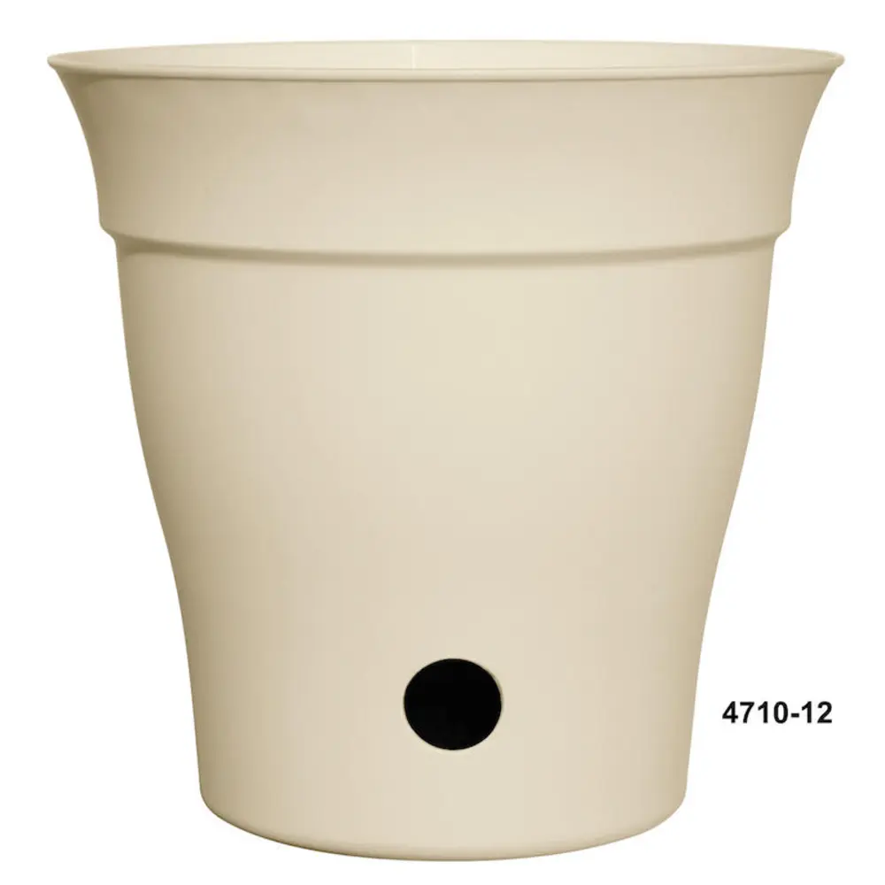 Contempra self-watering round planter, sleek design with a matte textured finish, water reservoir and exterior hole to monitor water level. Made in Canada with recyclable and non-toxic thermoplastic, U.V. protected. DCN products are available for fall booking, inventory is restocked once yearly.
