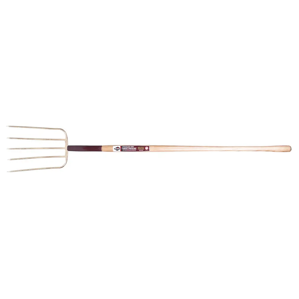 Lift, move and mix fertilizer, manure or compost with the help of the Garant Agro Series barn fork. This tool is equipped with an ultra-robust head made of a single piece of forged and tempered steel. Its 5, 16" (40.64 cm) tines are sharp and narrow for better manipulation of the fertilizer. This fork is designed especially for farmers looking for a robust, efficient and comfortable tool. Garant products are available for fall booking, and inventory is restocked regularly.