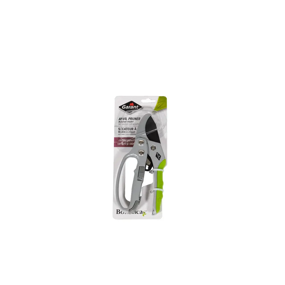 Cut the dead stems off plants and bushes in comfort with the Garant Botanica 8 in classic-style anvil pruner. The non-slip handles are made of two molded pieces for greater comfort. The ratchet system allows you to cut stems that are up to 2.2 cm in diameter. Garant products are available for fall booking, and inventory is restocked regularly.