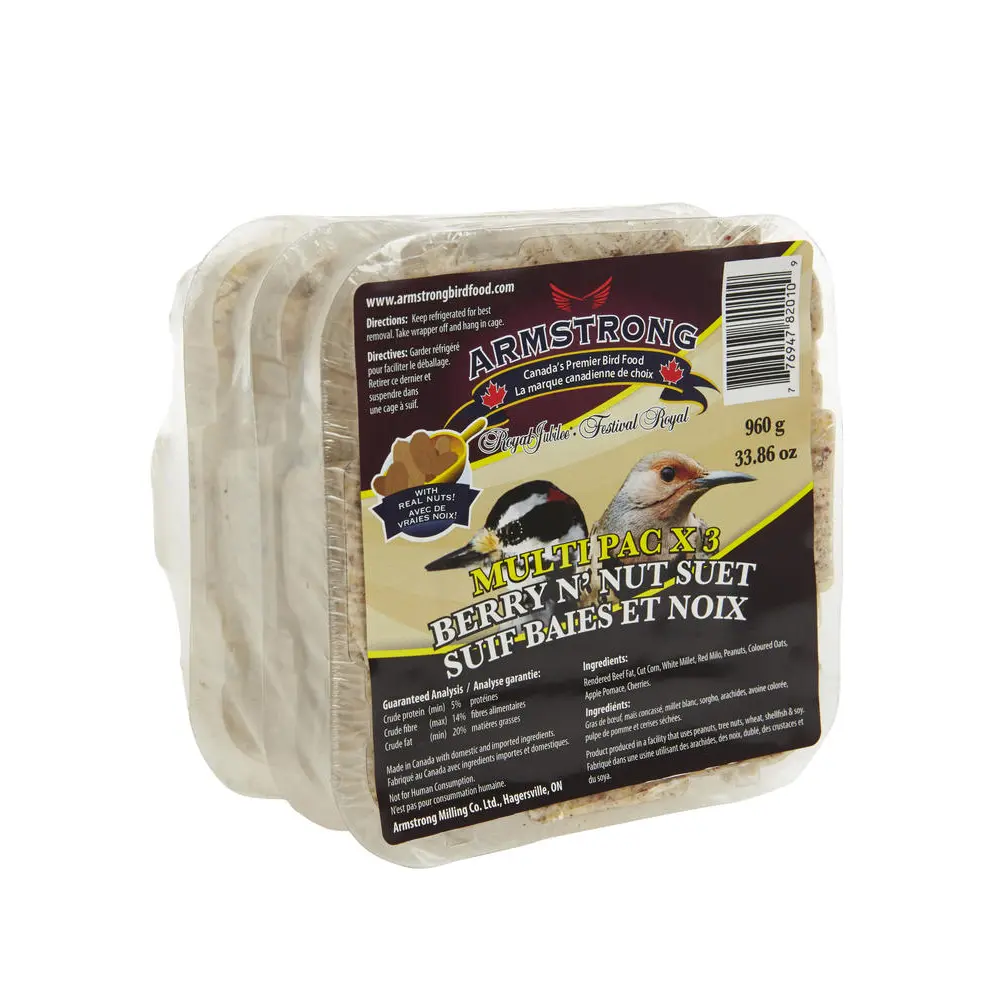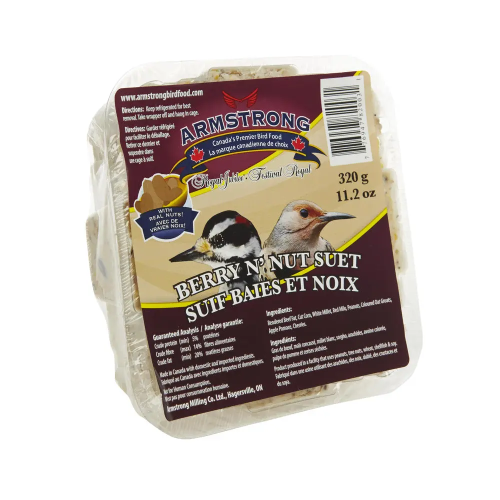 Armstrong Berry N' Nut Suet is made with fruit & nuts for fruit & nut loving birds. Best fed during colder winter months.