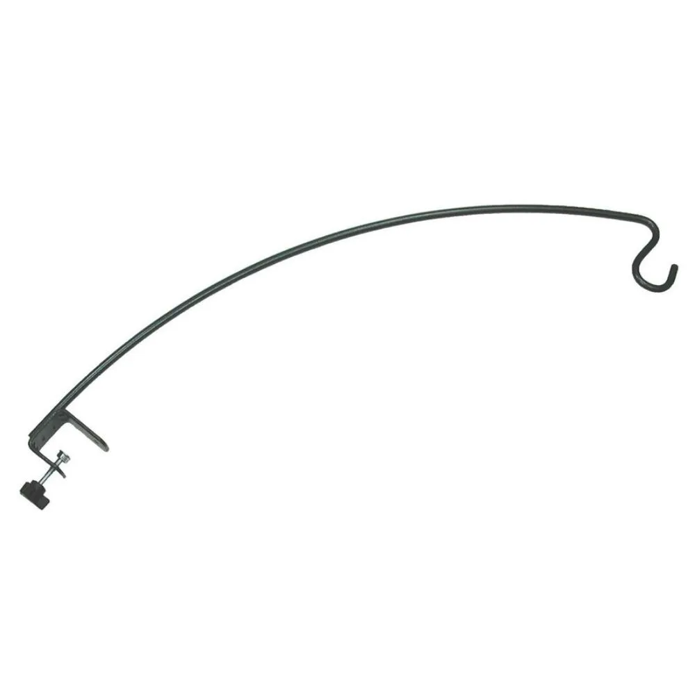 The arm extends 18 inches from the deck rail and has an 11 lb. weight limit. Its sturdy metal construction is powder-coated in a black weather-resistant finish. The Clamp-On Deck Hook fits onto horizontal railings up to 2 in. thick to conveniently hang bird feeders and plants. Simply clamp the hook onto your deck rail by tightening the hand knob, with no tools needed!