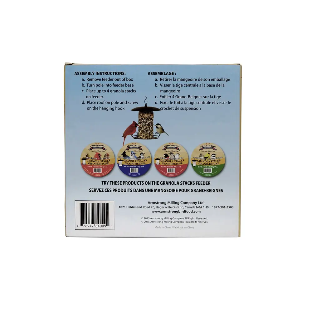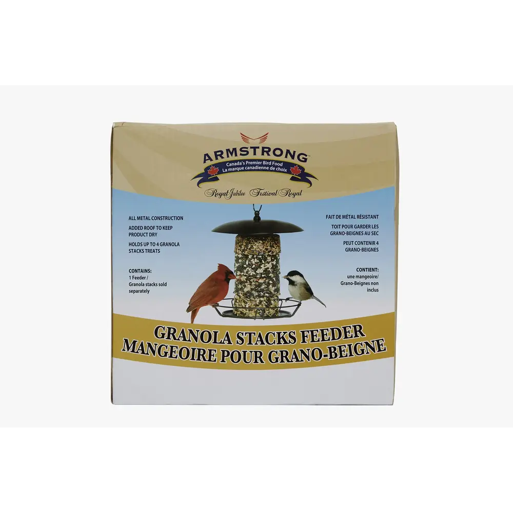 Armstrong Royal Jubilee Granola Stacks Feeder is a designed specifically for Armstrong Granola Stacks. Up to 4 stacks can fit on the metal feeder post.