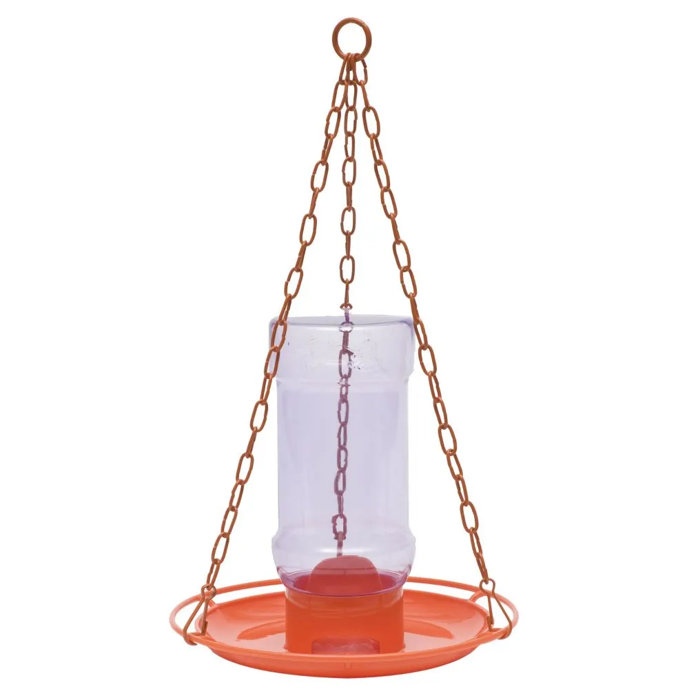 The Perky-Pet Oriole Jelly Feeder has an inverted jelly jar ensuring that your jelly is kept fresh, clean and dry. The patent pending jelly stirrer inside the bottle means that only the perfect amount of jelly will be distributed at a time. Simply turn the knob on the bottom of the tray to dispense more jelly! The purple, weatherproof bottle can hold 32 oz of grape jelly. Or, the bottle can be interchanged with most standard 32 oz jelly jars so there's no need to scoop out the jelly to fill the jar. Remember to clean your jelly feeder every few days to ensure that your orioles are receiving the freshest jelly supply.