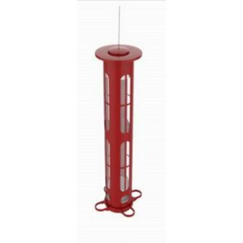 If a squirrel or larger bird tries to feed on any of the 4 spring-loaded perches, the X8's integrated design shuts every port simultaneously. And if a squirrel tries to hang from the top, the X8's weight-sensitive lid shuts every port, while the elongated tube further deters racketeering rodents. The cap is nestled within the tube to keep squirrels from accessing the seed. The large viewing window lets you know when it's time to refill, and the wide top opening makes cleaning and refilling a breeze! With a 2.5 lb seed capacity, the Squirrel-X8 keeps songbirds happy and coming back for more!