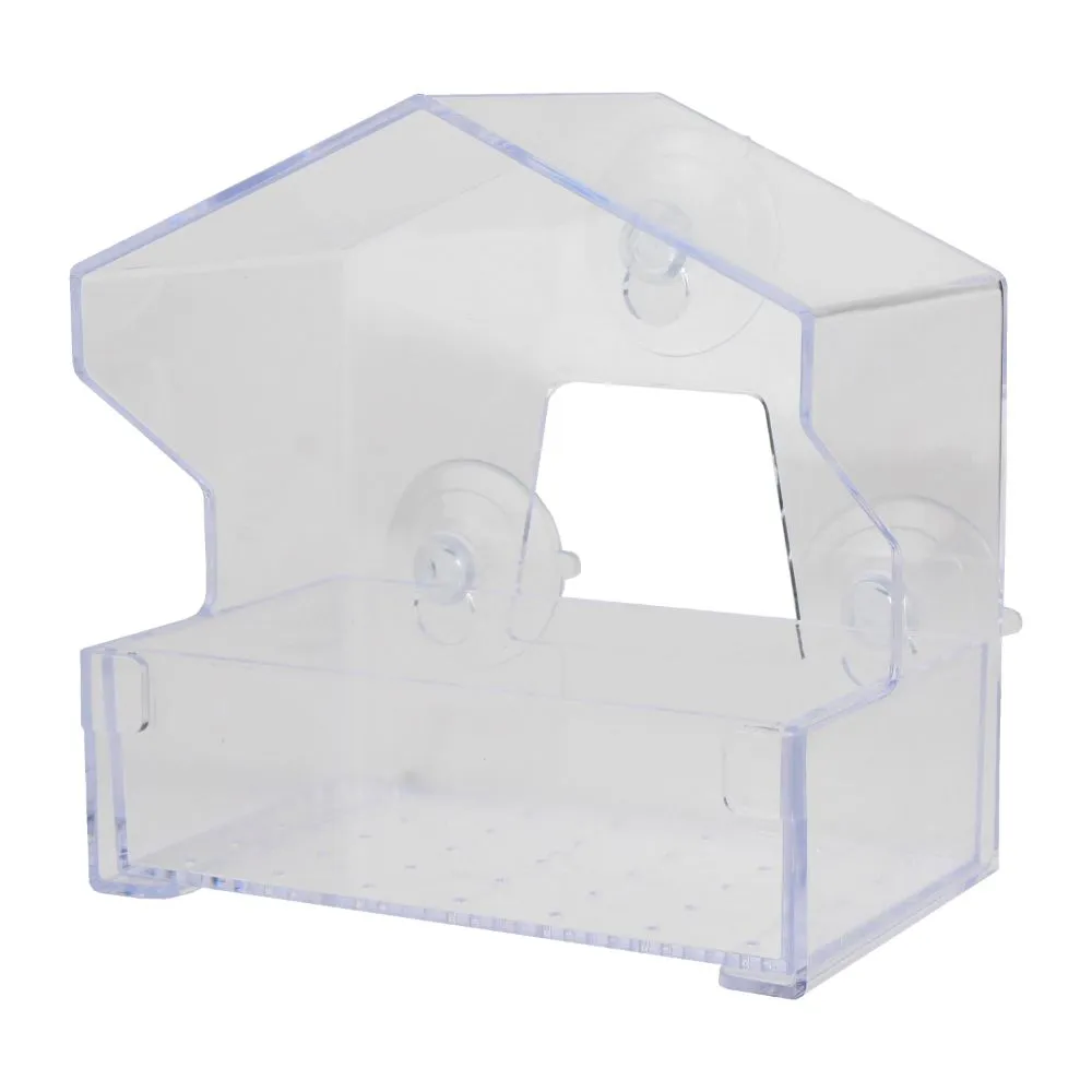 Enjoy having your favorite birds right outside your window with the Perky-Pet Window Bird Feeder. Holding up to 1/2 lb of seed, this bird feeder features a crystal-clear plastic construction that makes bird watching easy from any angle. This feeder boasts a large, inviting entrance that will fit even large birds like cardinals. The Window Bird Feeder attaches securely to windows with three suction cups, which provide a strong sturdy hold to prevent the feeder from falling off. For your convenience, this feeder features a removable seed tray to allow for easy filling and cleaning without detaching from the window. Plus, the feeder’s angled roof helps to keep the feeder cleaner. With food for them and fun for you, this feeder promises hours of enjoyment as you watch birds eating and flying about. Note: To securely hang a window feeder, it is important to thoroughly clean your window first. Once clean, moisten the feeder’s suction cups with a bit of water or vegetable oil then apply the feeder to the glass. The moisture will create better suction, so the feeder stays in place.