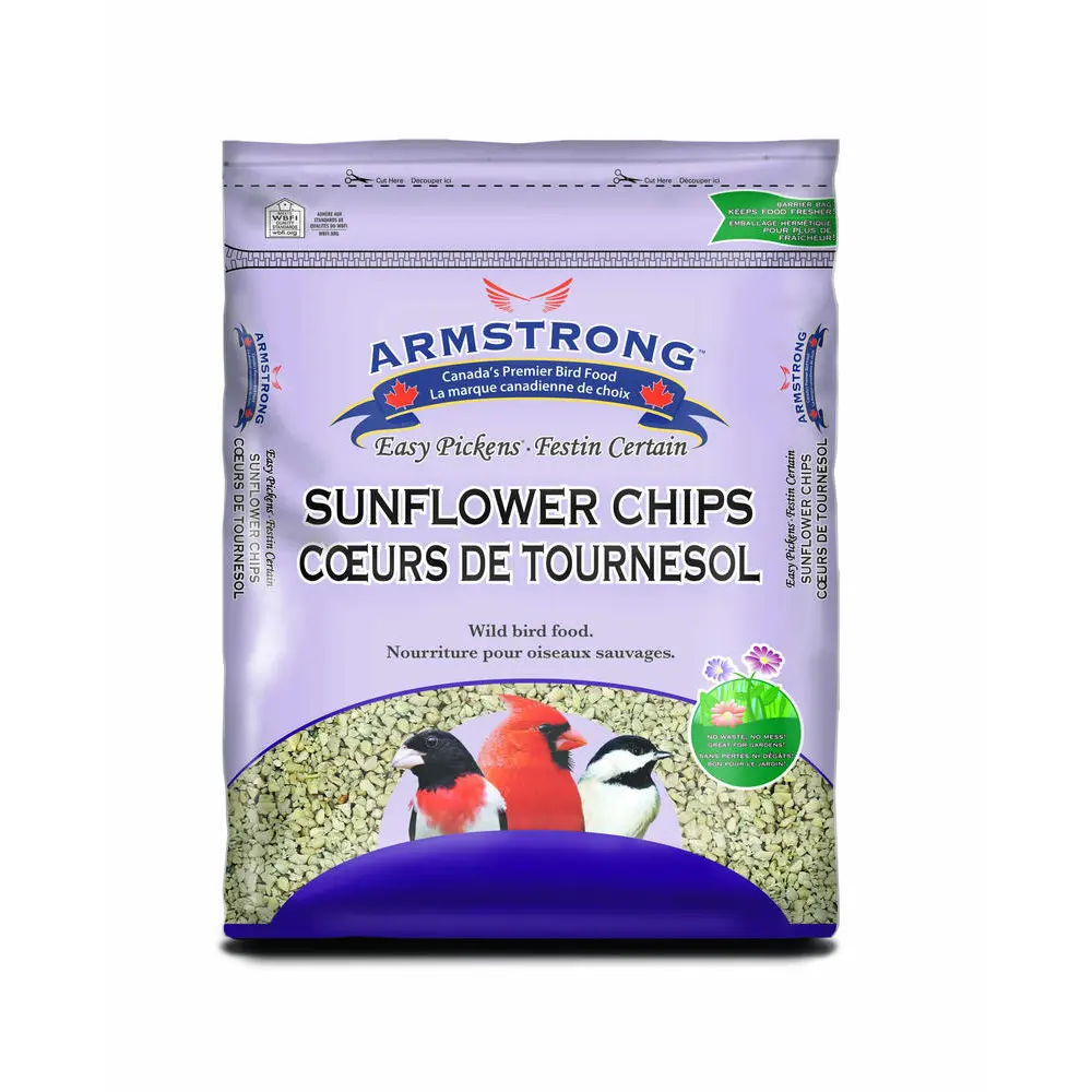 Straight seeds desired by specific beautiful wild birds! Sunflower Chips are a favourite amongst small & large sunflower loving wild birds! All of the high energy benefits of black oil sunflower, without any shells, waste or mess! Best used with a large port tube feeder or hopper feeder. Armstrong Sunflower Chips is 100% black oil sunflower kernel, broken down into fine sized chips.