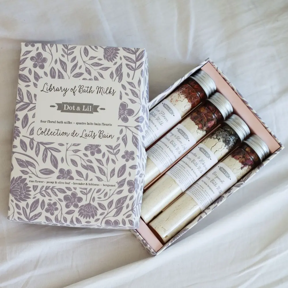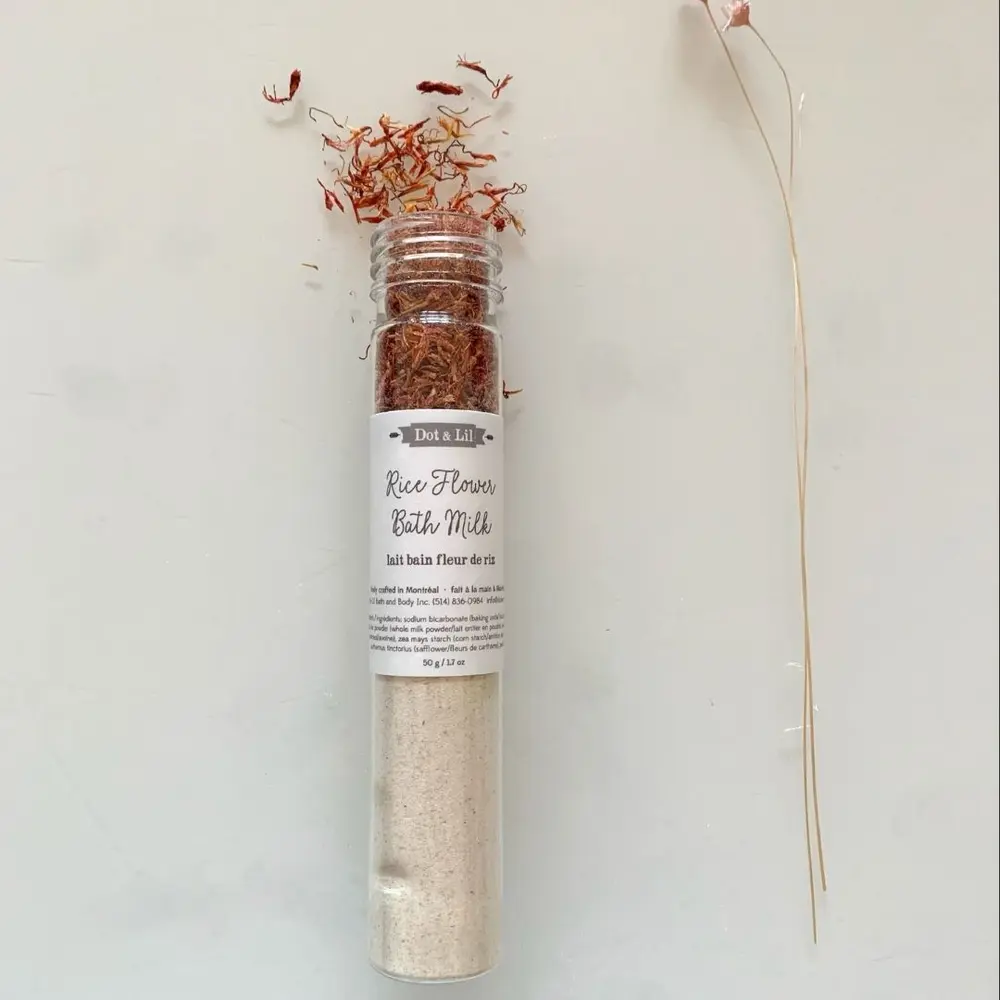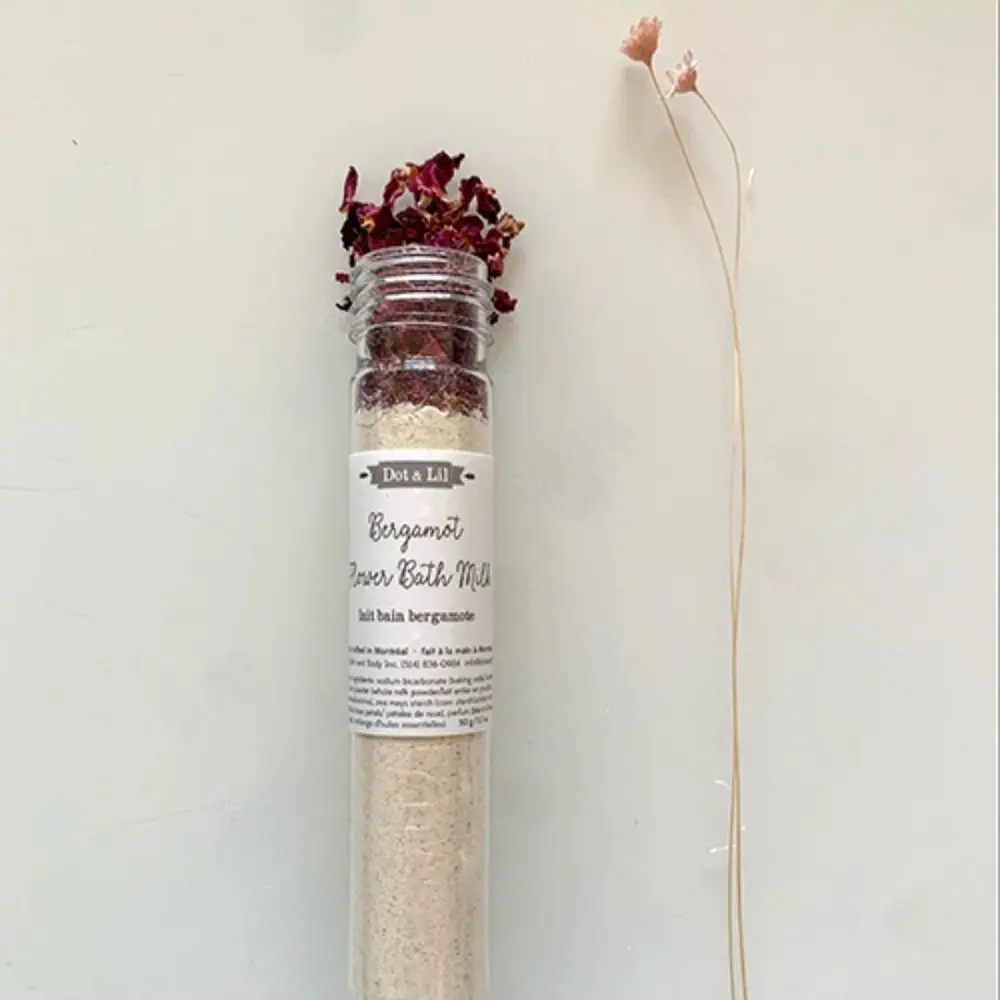 Dot & Lil's best-selling milk bath has luxuriously moisturizing whole milk powder, with ground oatmeal and baking soda to soften the water and your skin. This super-rich and soothing formula turns the bath water milky, white and opaque and gives you a Cleopatra-like bathing experience. Leaves skin sweetly scented and soft.
