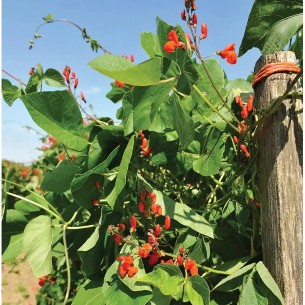 A vigorous green pole bean, Scarlet Runner is prized for its abundance of bright red blooms that attract hummingbirds and add a welcome splash of colour to the vegetable or ornamental garden. Medium green beans that are curved, 12cm (15") long and stringless if picked young are produced on vines that can reach over 300cm (10") in the air! For optimum flavour, harvest and cook beans when they are still young and tender.