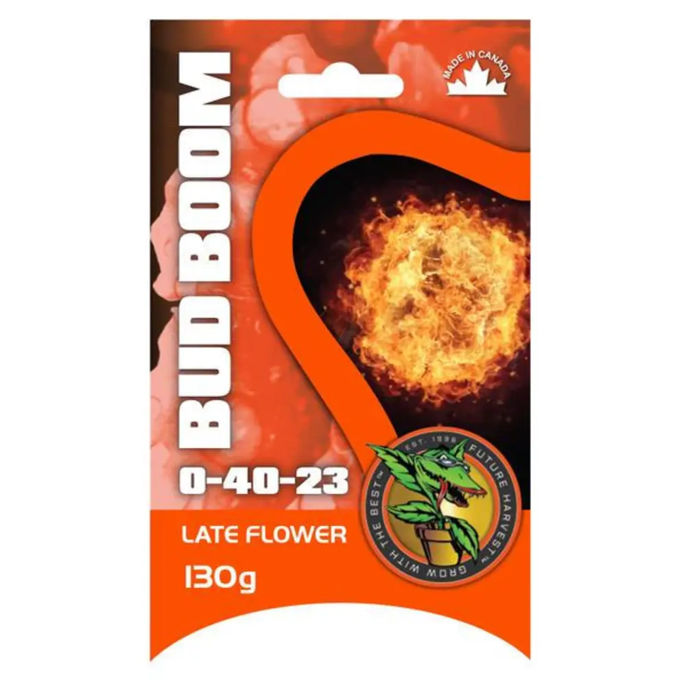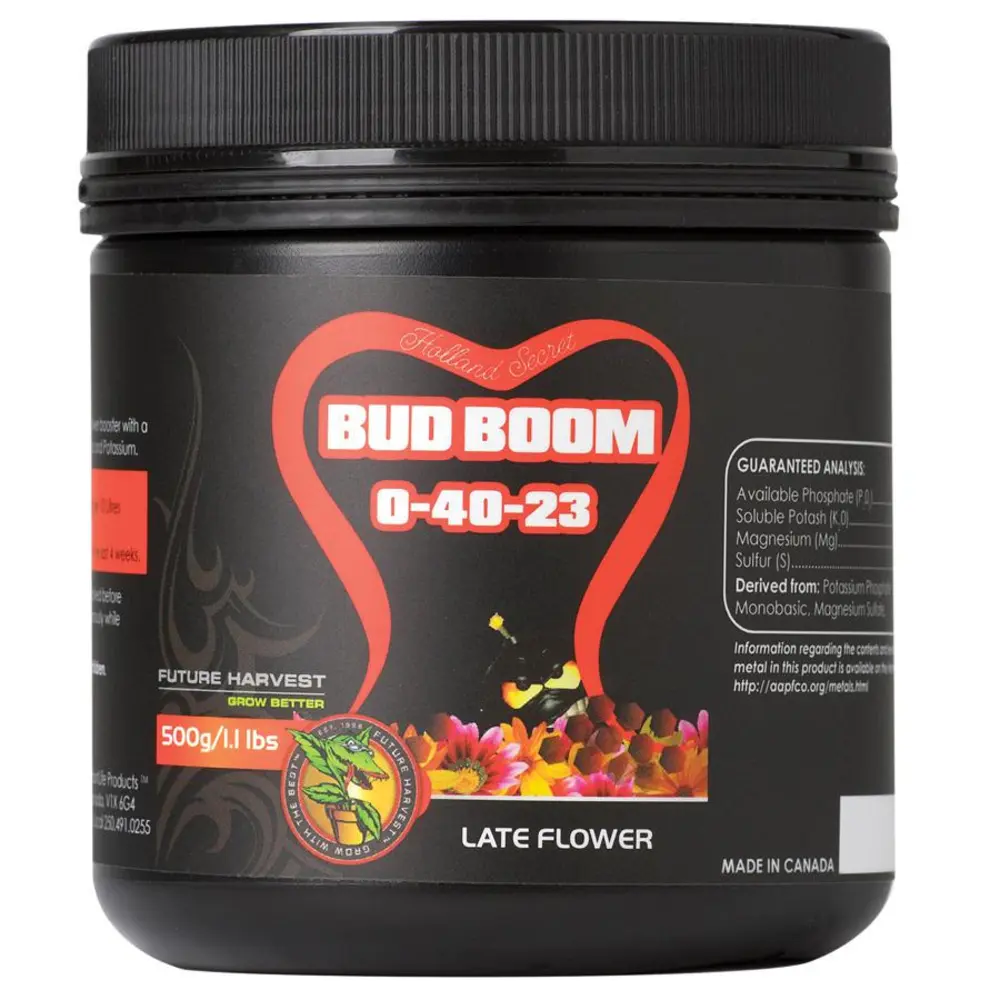 Bud Boom is a floral hardener and a finisher, designed to ripen fruits and bring out the tastes and smells locked deep down in the genetics of your plants. The key performance benefits are weight gain, increased flower density and enhanced flavour in fruiting crops. Bud Boom is a P-K additive containing sulfur and magnesium; both of which are elements that help to ripen plants off. It will show visible results quickly, with the main benefits being an increased yield and enhanced flavour. It's a final boost for your crops at the end of the cycle. Key Features: Assists in pH control, enhances flavour in fruiting crops. It is super concentrated. Delivers visible results and happy harvests consistently, can be used with any branded fertilizer schedule and even on top of most additive schedule, it will ripen crops uniformly due to increased magnesium and sulfur levels during final stages. Future Harvest products are available for fall booking. Inventory is restocked once yearly, with potential for repeats based on order minimums.