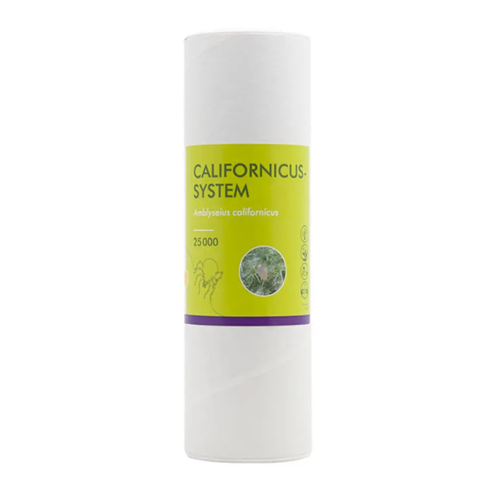 The predatory mite Amblyseius californicus against different spider mite species. Translucent with a brown-orange spot in the shape of an X on its back. Feeds on all stages of the two-spotted spider mite. Controls pest mites such as the broad mite. Biobest is ordered weekly, and may involve additional shipping charges. Weekly order deadline is Tuesday afternoon, orders are shipped from Saint John the following Tuesday. Shipping typically takes 1-2 days and may be longer for remote locations. Deadline is subject to change on weeks with holidays. Talk to your sales rep for more information.