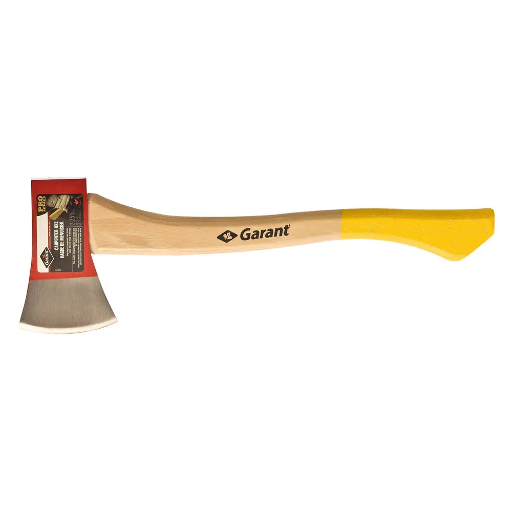 Work with wood easily and efficiently with the help of the Garant Pro Series professional carpenter axe. This tool with a red finish has a 2.25 lb forged and tempered steel head for increased strength and rigidity. The head is broad with a blade that is well sharpened and is 2/3 polished which, will cut true and easily into wood. Its short 21 inch (53.3 cm) handle made of varnished hickory absorbs shock well and allows for easy and safe one hand manipulation. This axe of superior quality is especially made for carpenters looking for a robust, reliable and safe tool. 19.75" long x 6.75" wide.