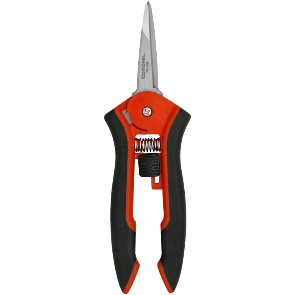 Compact, sharp stainless steel blades with double beveled tapered tips for precision cuts. Durable handle with soft touch feel for lightweight comfort and performance. Heavy-duty spring for reliable performance. Double-sided lock for left or right hand use. Handle and blades can be sterilized to limit cross contamination. 2 5/16 inch blade. Corona Tools are available for fall booking, inventory is restocked once yearly.