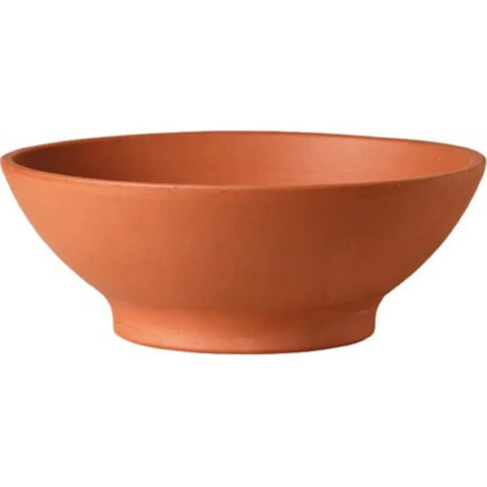 This beautiful, low clay bowl from Deroma will embellish your indoor and outdoor spaces all while allowing plants to breathe and grow at their best. Low round shaped pot with wide open mouth, perfect for dense plant arrangements. Drainage hole in base helps prevent over-watering, while the breathable terracotta allows the temperature of roots to remain constant when exposed to direct sunlight. Deroma products are available for fall booking, inventory restocked once yearly.