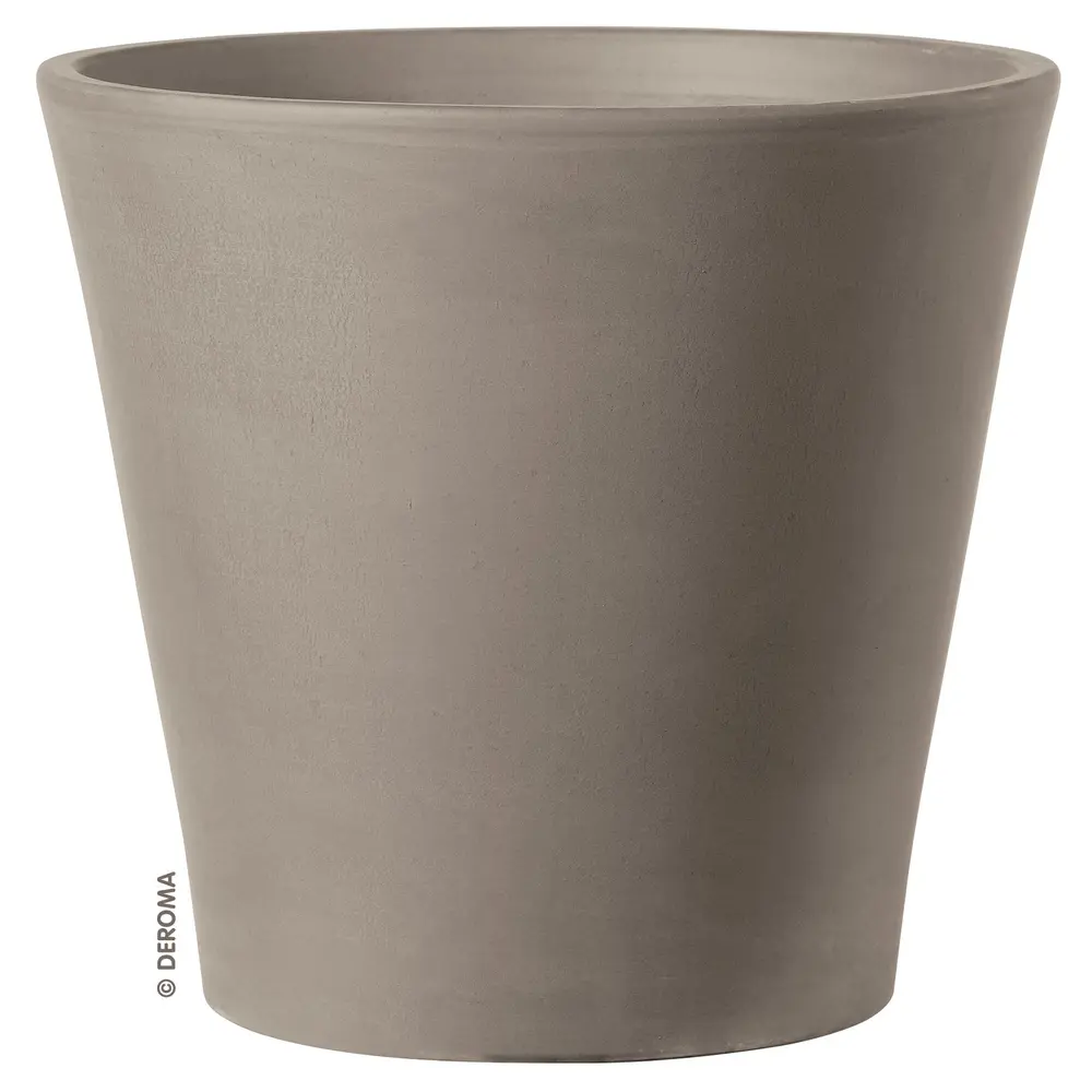 This beautiful, sleek, tapered clay pot from Deroma will embellish your indoor and outdoor spaces all while allowing plants to breathe and grow at their best. Drainage hole in base helps prevent over-watering, while the breathable terracotta allows the temperature of roots to remain constant when exposed to direct sunlight. Deroma products are available for fall booking, inventory restocked once yearly.