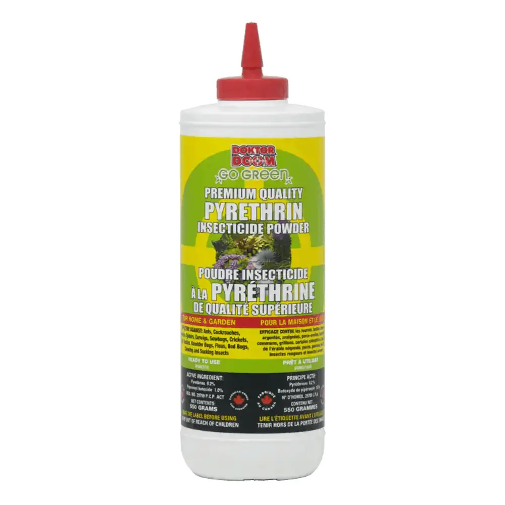 Doktor Doom's Go Green Pyrethrin Powder is suitable for use both inside, and outside in the garden. The Doktor Doom Go Green Pyrethrin Powder is derived from the chrysanthemum plant.