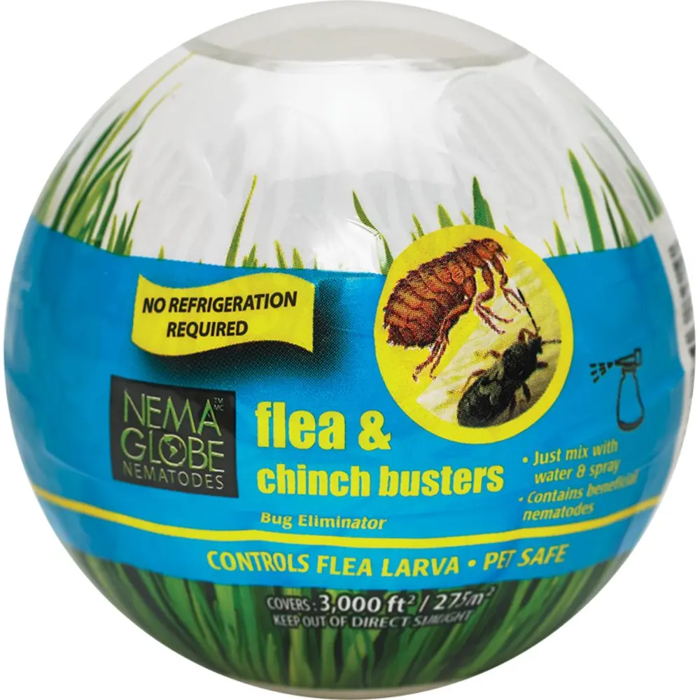 Nema Globe Flea & Chinch Bug Busters contain ~20 million encapsulated nematodes in a proprietary gel formulation.