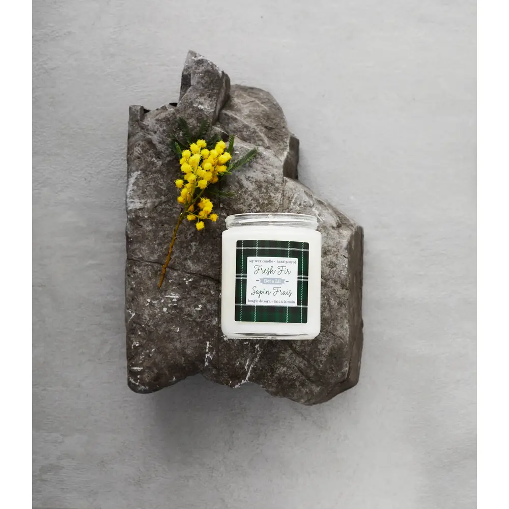 Dot & Lil?s finely hand-poured candles are made with a wax blend of 100% pure soy & botanical oils, with a cotton wick. Each candle is hand-poured in a glass jar with white metal lid, and comes with beautiful patterned box. This 7.2 oz size burns for approximately 45 hours.