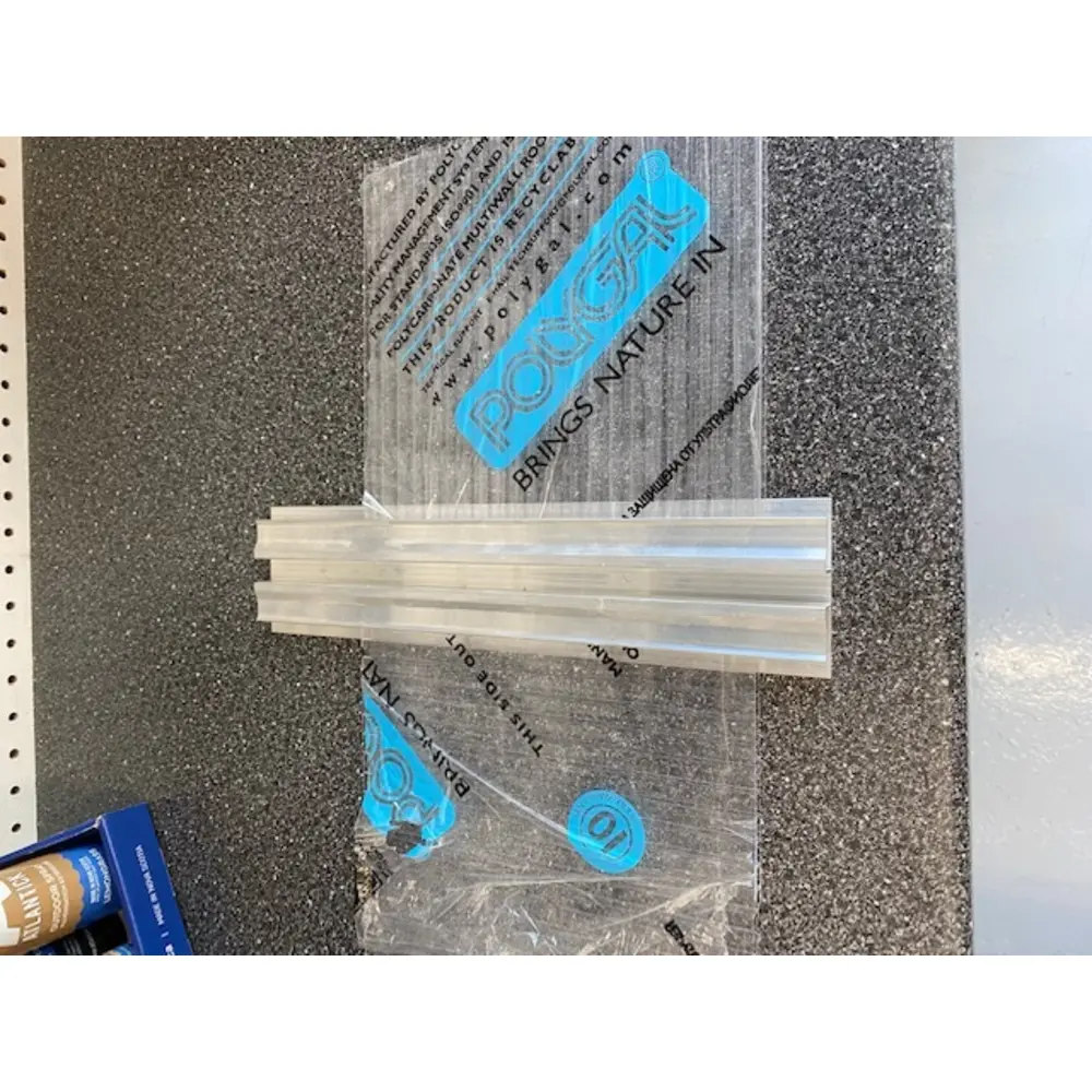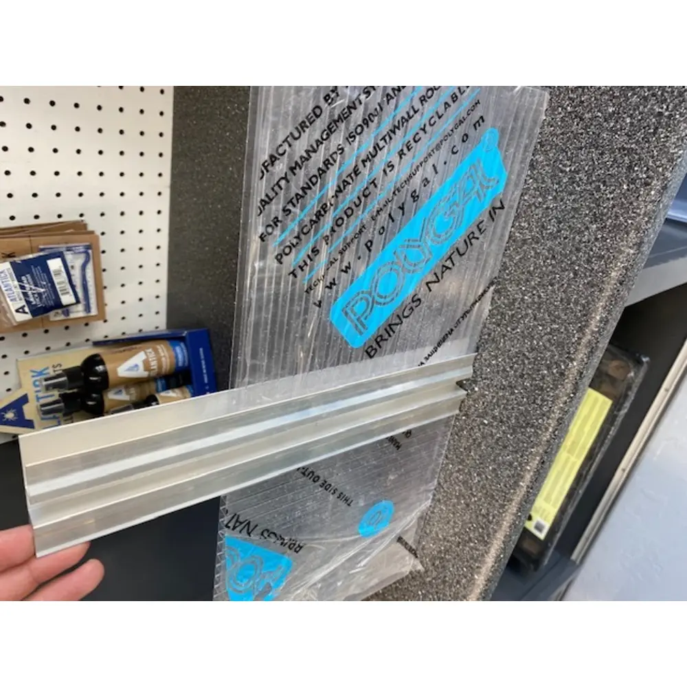 8mm aluminum H-splice for connecting sheets of polycarbonate. Available in 12' or 16'.