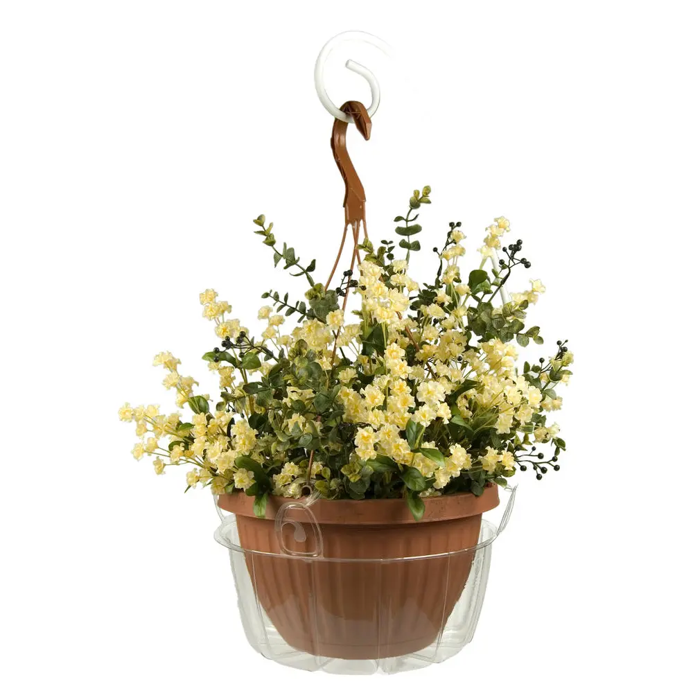 Clear, deep plastic saucer made specifically for hanging baskets. Holds excess water, and helps with self-watering. Helps to protect surfaces and prevent drips. Perfect for indoors and out.