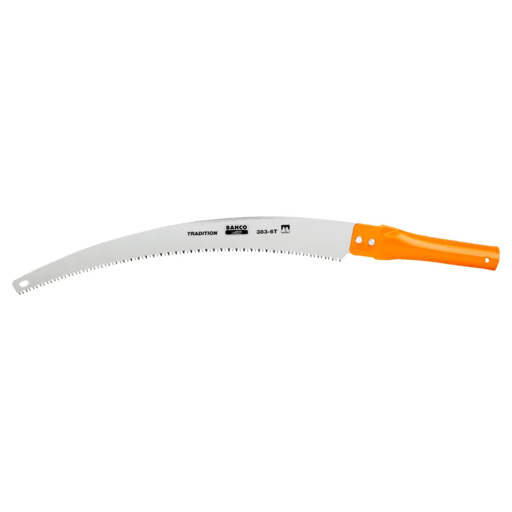 For easy reach of higher branches when fitted to 25 mm (1") extension pole. Strong curved blade with 6 TPI for more aggressive cut. With steel tube adaptor/handle. To be used with a 25 mm (1") extension pole