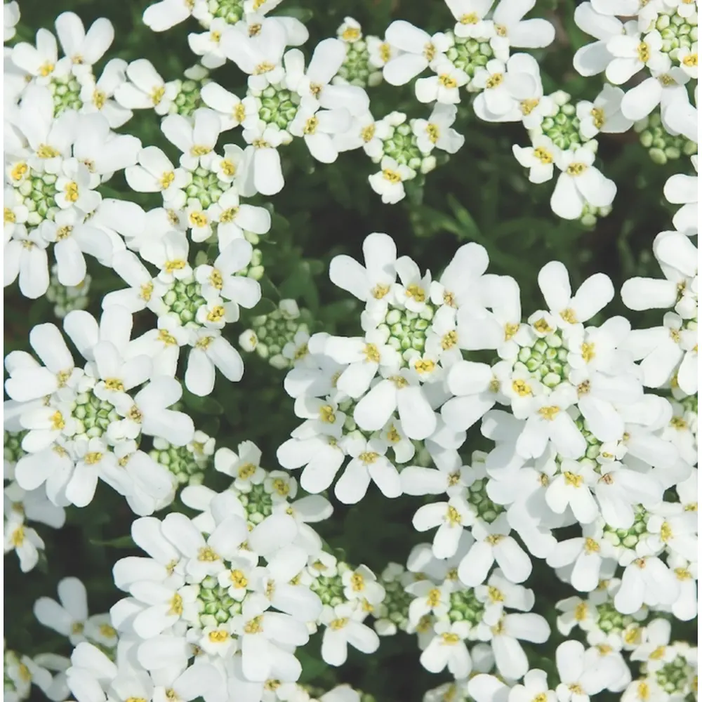 Low growing plants have dark evergreen leaves are are good looking year round. They are covered with pure white flowers from early spring to June, sometimes again in the fall. Use in rock gardens, as an edging or a filler mixed with spring-flowering bulbs and other flowers.