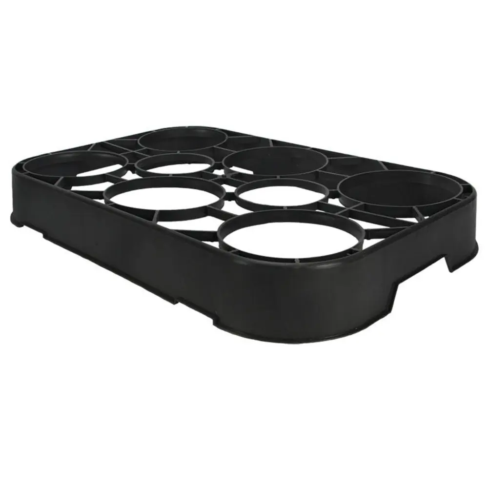Self-adjusting pot cavities allow for multiple sized containers to fit in the same tray. Perfect for spacing containers for optimal plant growth. Tall pot wells support pots for easy handling of fully loaded trays. Sturdy injection tray can be reused until ready to recycle. ITML products are available for fall booking. Inventory is restocked once yearly, with potential for reordering in season.