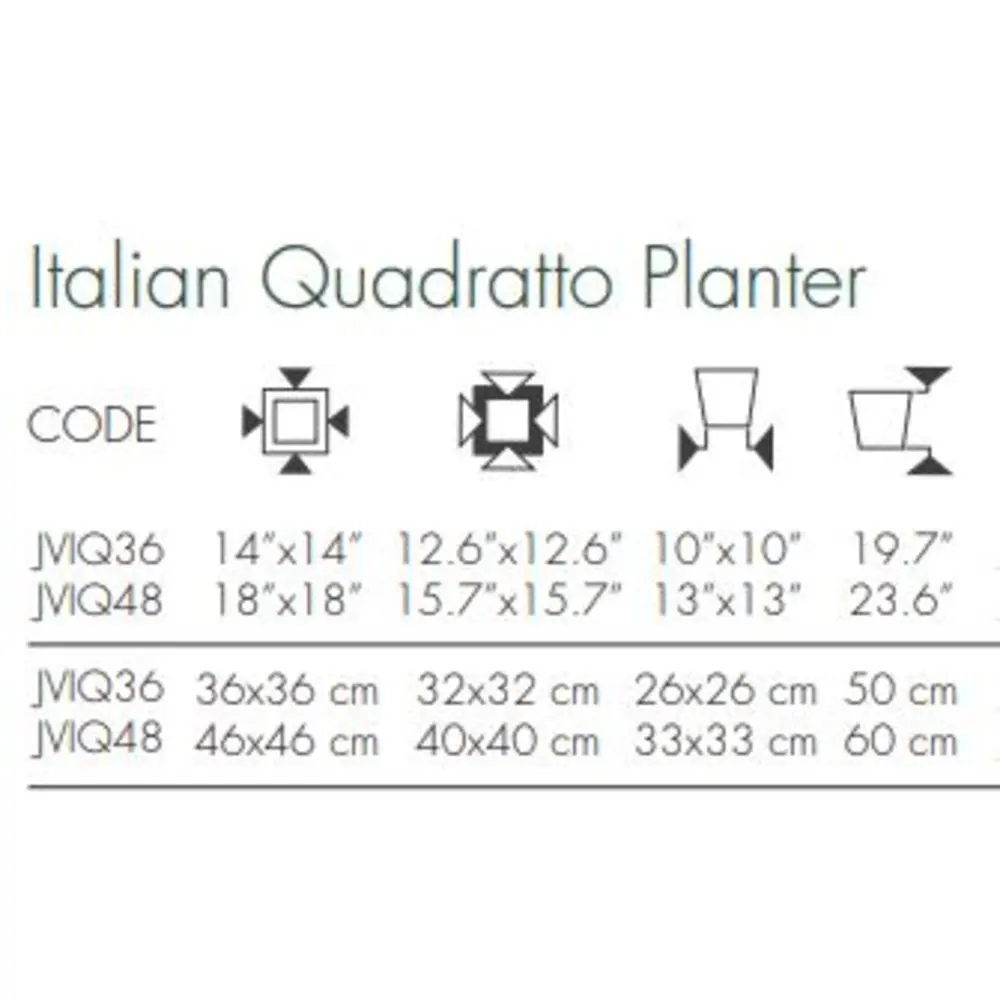 The Italian Quadratto Planter is available in several sizes and colours below.