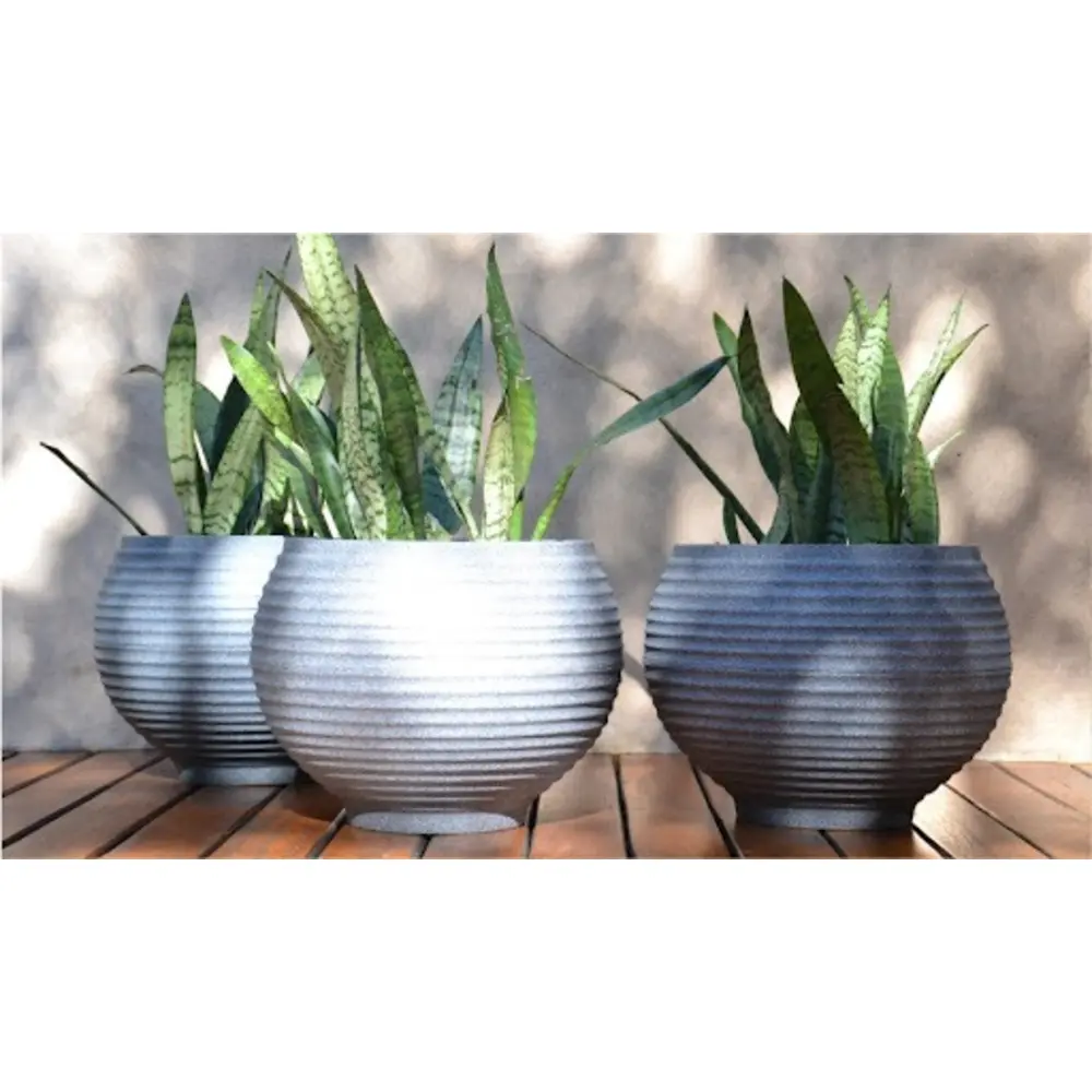 Japi pottery brings modern shapes and textures to your planters. These UV protected, lightweight, weather-proof containers are suitable for indoor or outdoor use. Impact resistant and made of a recyclable polyethylene material.