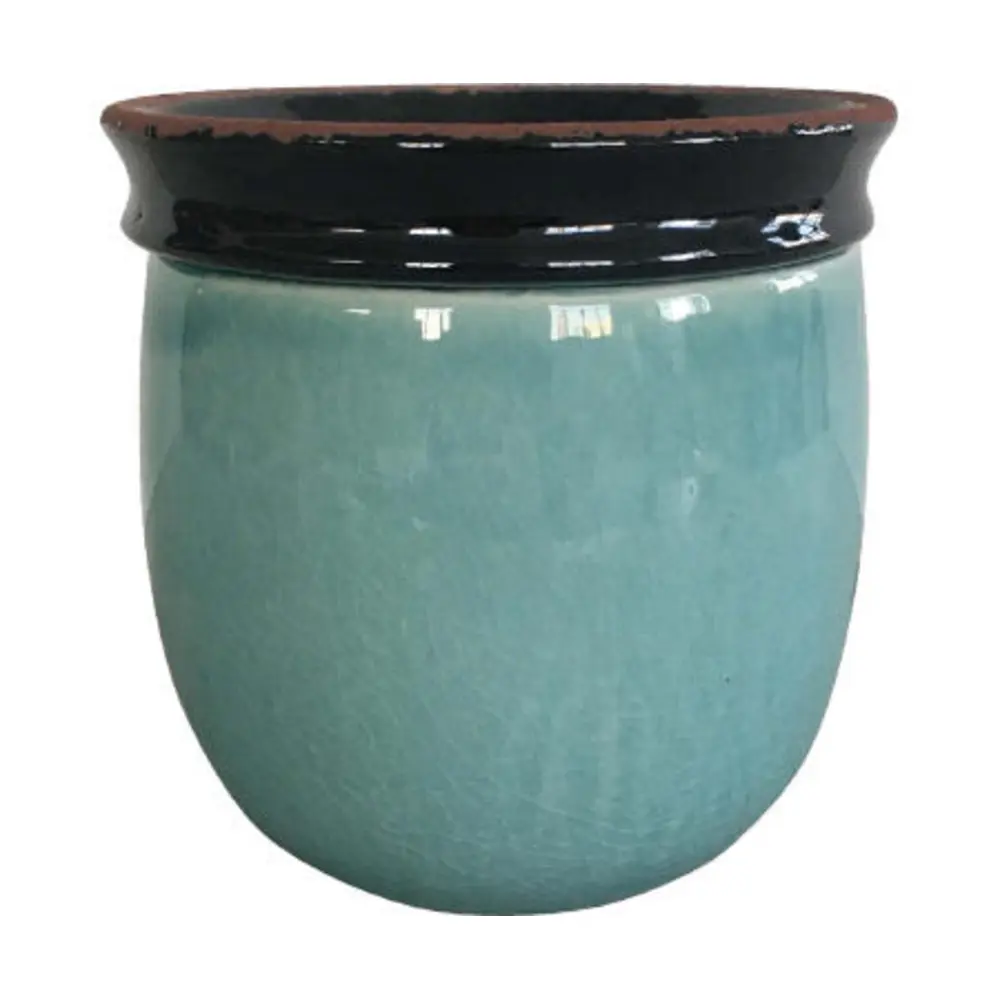 Small ceramic planters have a two-part watering system for easy care. Pack of 9 includes 3 of the following colors: light green, periwinkle, and crackle beige. Size: 5.5"