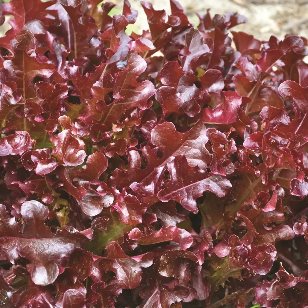 Red-leafed lettuce. Very productive over a long period and attractive in the garden.