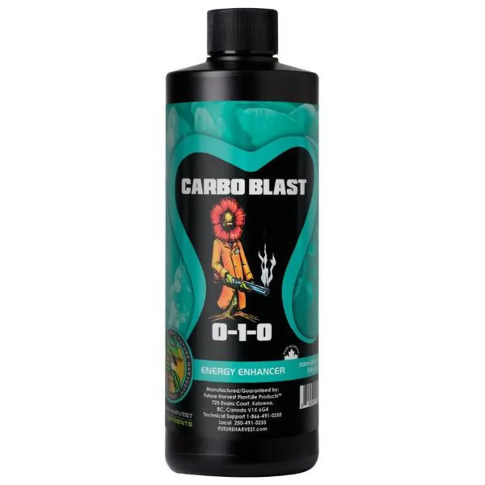 Plants produce the sugars they rely upon for food by a process called photosynthesis. They utilize light, water, carbon dioxide and fertilizer to produce sugars which are used for energy. These carbohydrates are, alongside oxygen, one of the end products of photosynthesis. Carbo Blast is an additive which supplies extra carbohydrates to plants. Feeding additional carbohydrates to the plant means that it does not have to rely so heavily on its own resources and can more easily direct energy to the manufacture of essential oils, resins and fragrances. Plants can outgrow their energy sources, which causes growth to slow down, sometimes bringing it to a complete standstill. Carbo Blast is designed as an energy boost during flowering to load up plants with carbs to stop them from stalling. Carbohydrates can also help to speed up the plant's metabolism and therefore have a positive effect on yields. Key Carbo Blast Features: The carbohydrates contained in Carbo Blast are identical to the sugars a plant produces, carbo Blast delivers instantaneous results giving plants the energy they need, can be used with any feeding and additive schedule, the extra available energy source promotes increased oil and fragrance, carbo Blast delivers better results than just using fertilizer and weight gain boosters alone, the additional carbohydrates in Carbo Blast can deliver enough energy to support larger and fuller fruit and flower production. Future Harvest products are available for fall booking. Inventory is restocked once yearly, with potential for repeats based on order minimums.