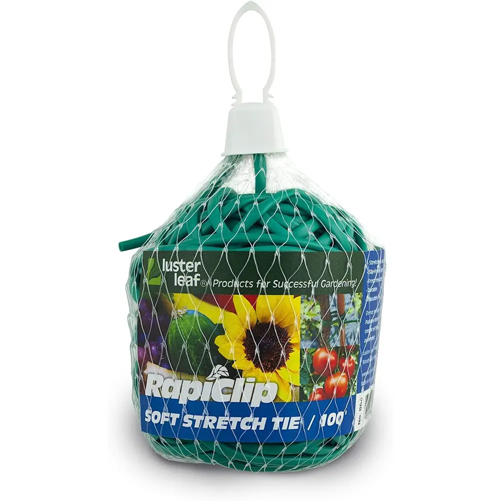 Soft stretch tie is the newest innovation from Rapiclip. Similar to their popular vinyl stretch tie, soft stretch tie is easier to handle & will not unravel during use. The stretchy material holds it’s tie while also expanding with the growth of plant or tree. It’s Green color blends in with garden surroundings & is perfect for use with any plant or tree.