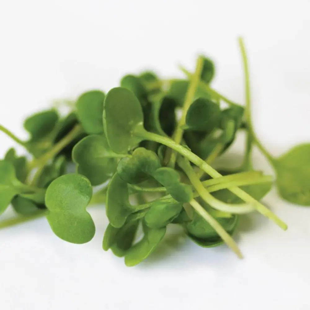 Dark green leaves with a purple stem. A spicy flavour and fine texture