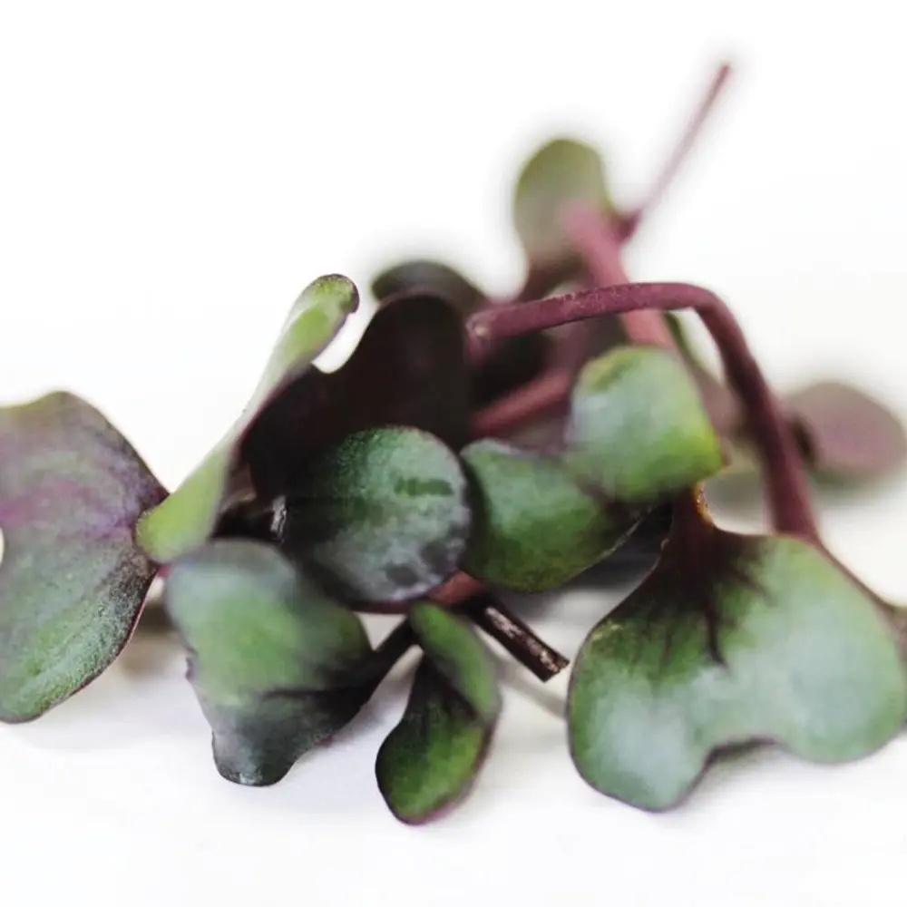 Purple stem with lighter green intermediate leaves and a mild flavour.