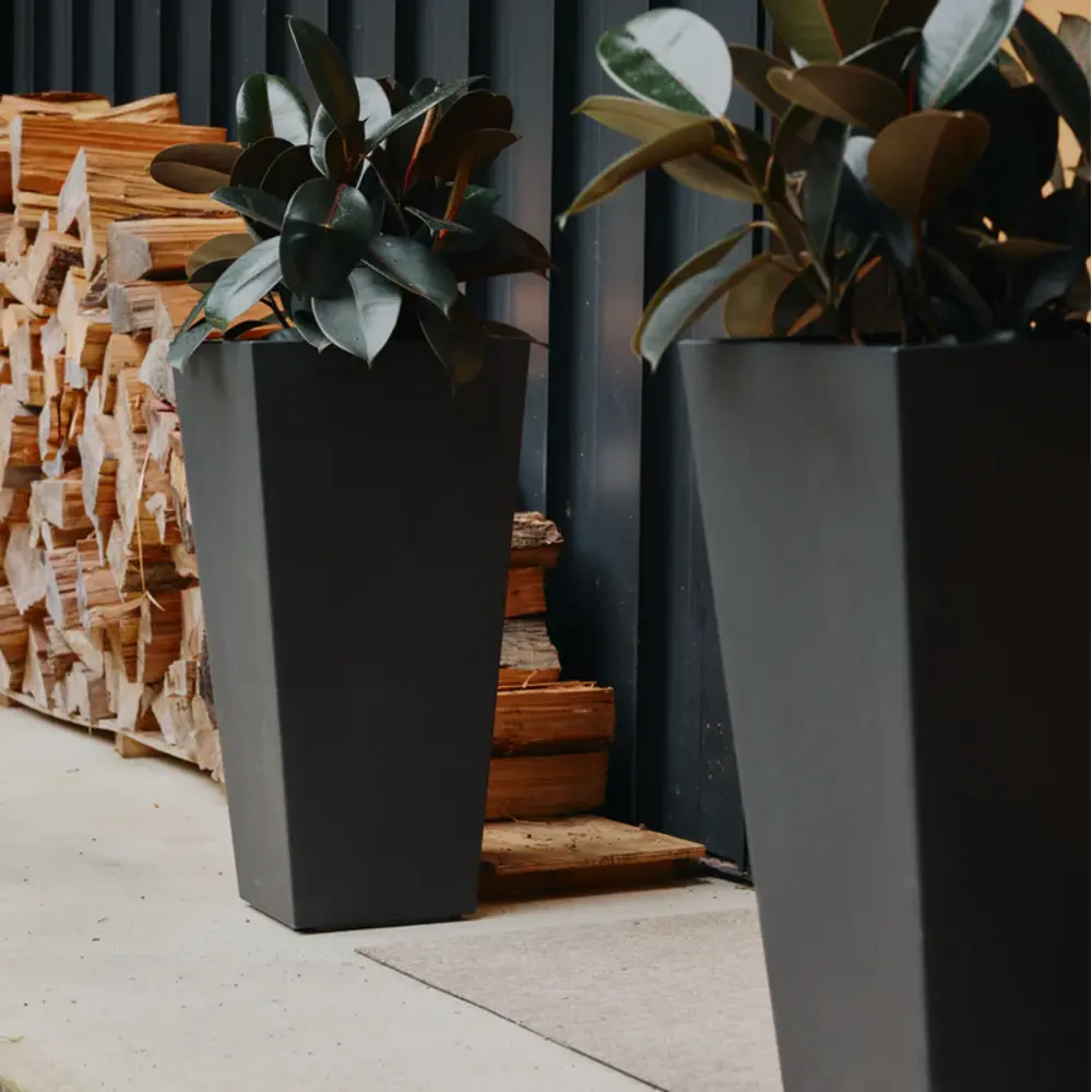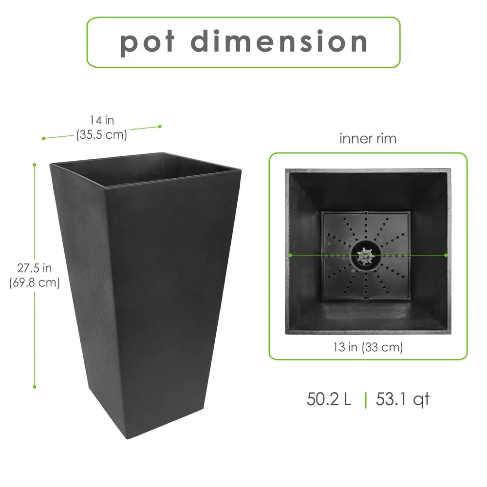 Scaled for presence, designed for permanence. The 28" Sonata brings height and impact with clean lines and a sculpturally tapered silhouette that creates harmony and flow that compliments your plants. Durable in design, this planter is made to last through every season, it keeps its refined appearance year after year. With the built in water reservoir your plants will thrive with the optimal amount of hydration and drainage, thanks to the drainage plug.