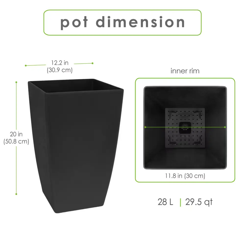 The Soprano Planter's clean, modern shape provides an elegant and timeless look. Featuring an interior self-watering system to ensure plants stay hydrated. Durable for all seasons. Made from recycled rubber, keeping tires out of landfills.