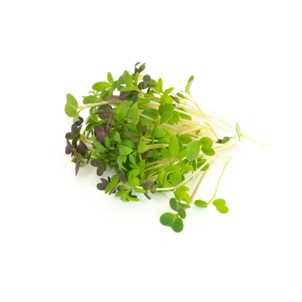 A spicy mix of microgreens. Contains red mustard, arugula and cress.