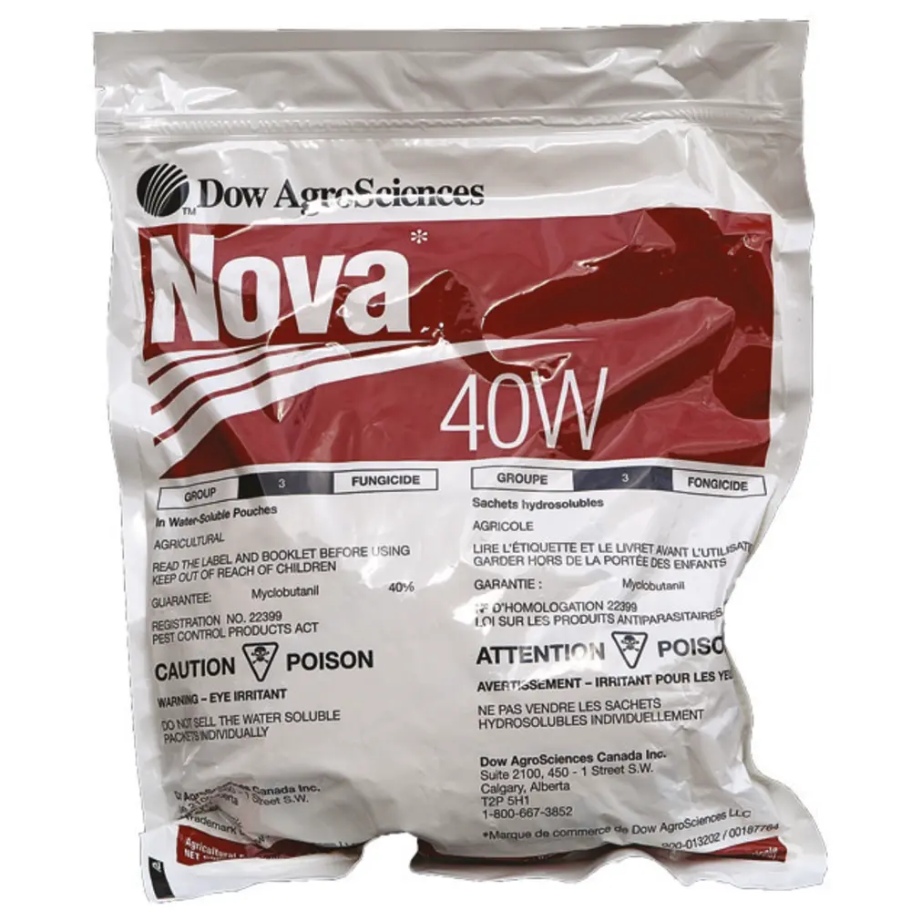 NOVA 40W Agricultural Fungicide is systemic fungicide with both after-infection (eradicant) and protectant properties. This fungicide is most effective when used in a routinely scheduled preventative spray program.