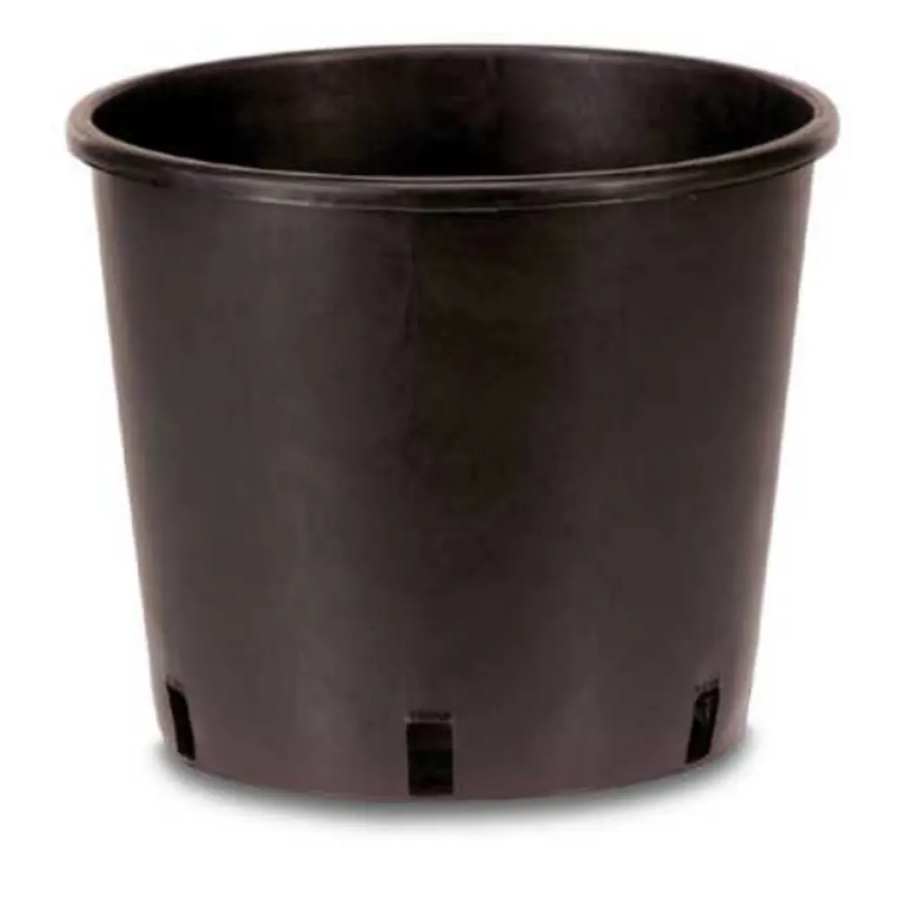 Round nursery pot featuring side holes. 100% LDPE recycled low density polyethylene. Niccolai pots are manufactured with regenerated plastics (PE) using the most advanced technologies of injection molding. They have an extraordinary sturdiness and flexibility, suitable for any type of environment and climate. Available in sizes from 2.8L to 25L.
