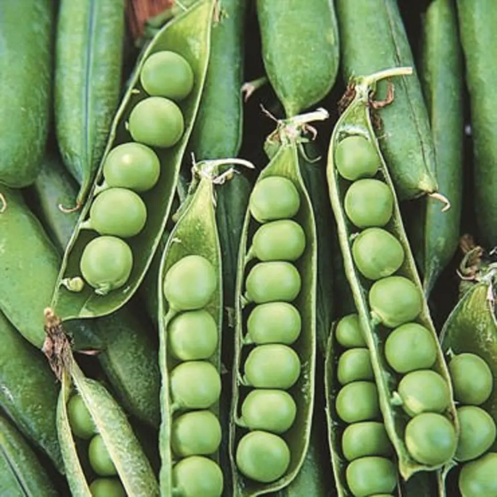 An impressive variety, Frosty offers an early prolific yield of 9cm (3 ½") long pods bursting with tasty medium-sized peas. Frostyhas a greater number of pods per plants and peas per pod then other varieties. The vines reach about 70cm (28") tall and bear many double pods, making harvesting a snap! Once shelled, the dark green peas are tender and sweet and may be eaten fresh, cooked, or frozen.