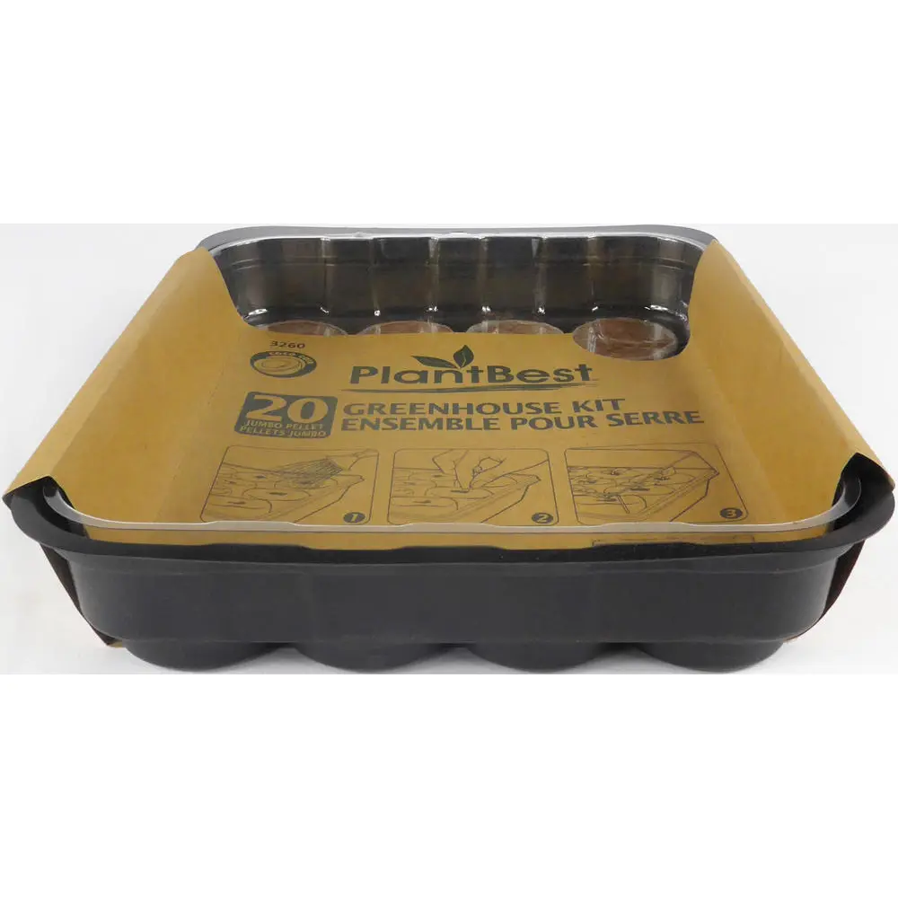 Kit comes with a bottom tray to catch water, either 10, 20 or 50 42mm coconut coir pellets, and a 2" humidity dome. Coconut coir pellets are dried and compressed in a secure, fine mesh netting. All you need to get growing is water and seeds! Plant Best products are available for fall booking, inventory is restocked once yearly.