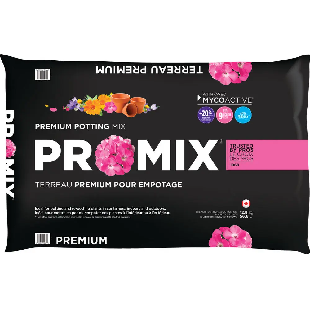 Ready-to-use, this peat-based Pro-Mix Premium Potting Mix is perfect for all indoor and outdoor container planting. Recommended for potting or re-potting plants in containers. Premier Home and Garden products are available for fall booking. Product is rebooked frequently throughout the year.