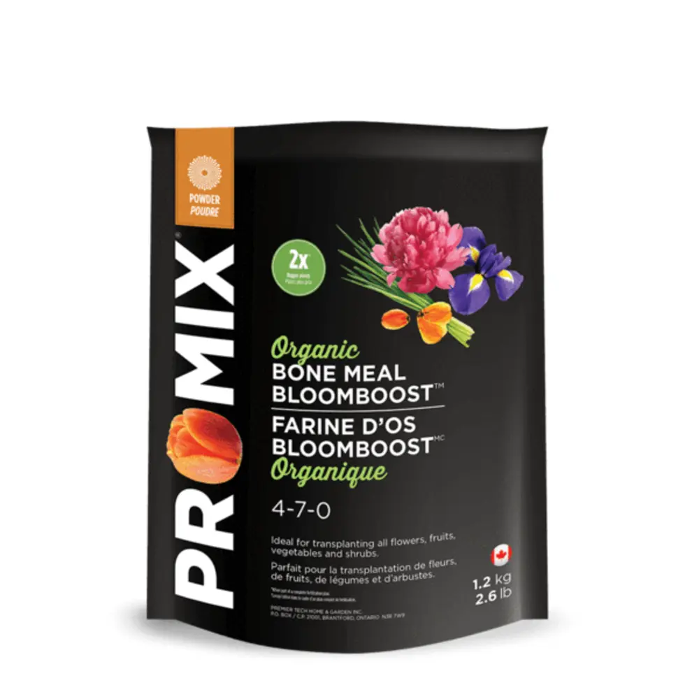 Pro-Mix Bone Meal Bloomboost 4-7-0 is an organic fertilizer ideal for transplanting all flowers, fruits, vegetables and shrubs. It fortifies roots and provides strong plants. Premier Home and Garden products are available for fall booking. Product is rebooked frequently throughout the year.