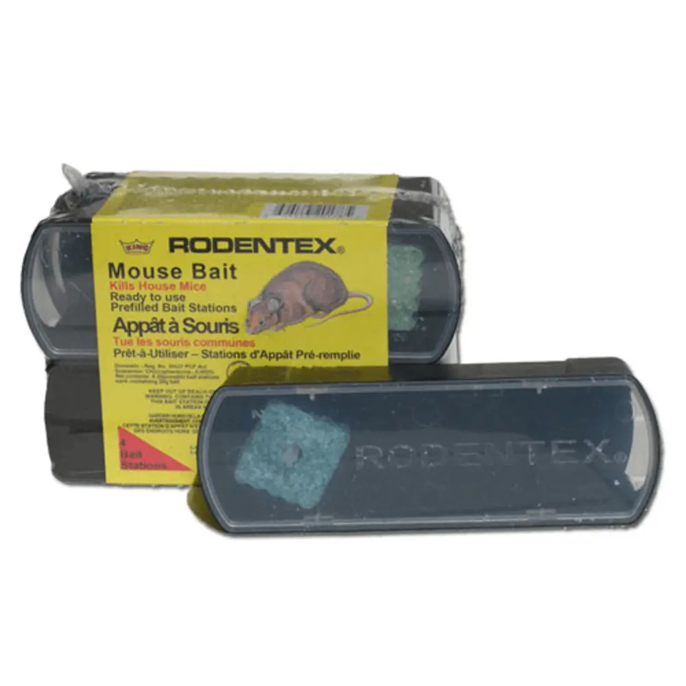 Rodentex mouse bait stations have an oversized opening that allows field mice as well as house mice. Stations feature a see-thru bait window, come loaded with bait, and are shrink-wrapped for product freshness & visibility. Contains 0.005% Chlorophacinone (CPN). CPN has a 2nd mode of action that breaks down capillary walls resulting in faster, more complete kills. King Home and Garden products are available for fall booking, inventory is stocked once yearly.