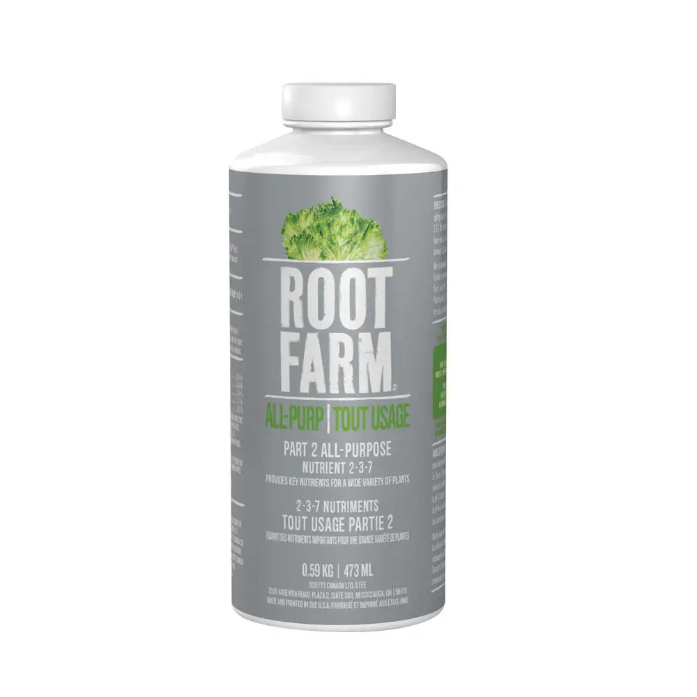 Suitable for all plant types, especially leafy greens and herbs, Root Farm Part 2 Base All-Purpose Nutrient 2-3-7 delivers a boost of phosphorus and potassium to support growth. This product is ideal for use with water-based systems or soil-less growing mixes like Root Farm Hydro Potting Mix. To ensure your plants get all the nutrients they need, mix with Root Farm Part 1 Base Nutrient 4-0-1.