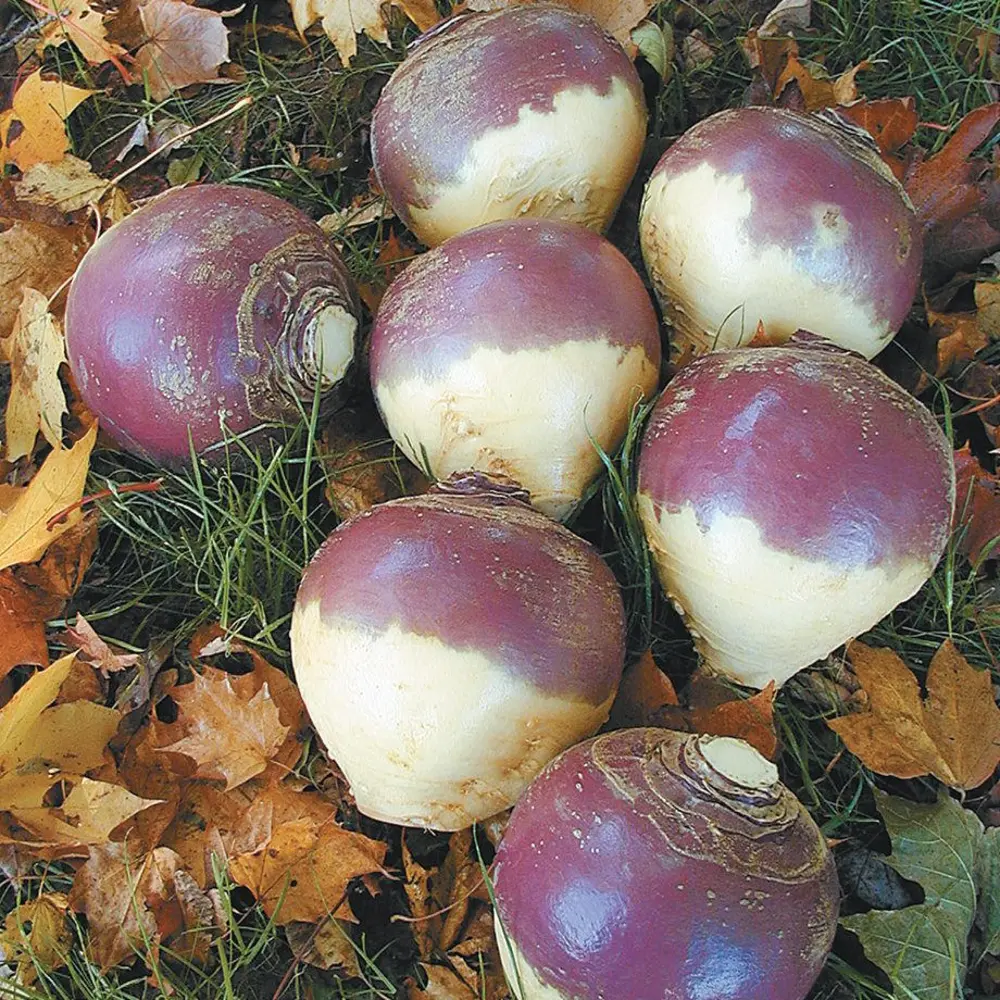 This hardy variety offers large globe-shaped roots that grow 13-15cm (5-6") in diameter. The smooth skin has deep purple shoulders and a yellow bottom with fine-flavoured creamy yellow flesh. Clubroot resistant variety.