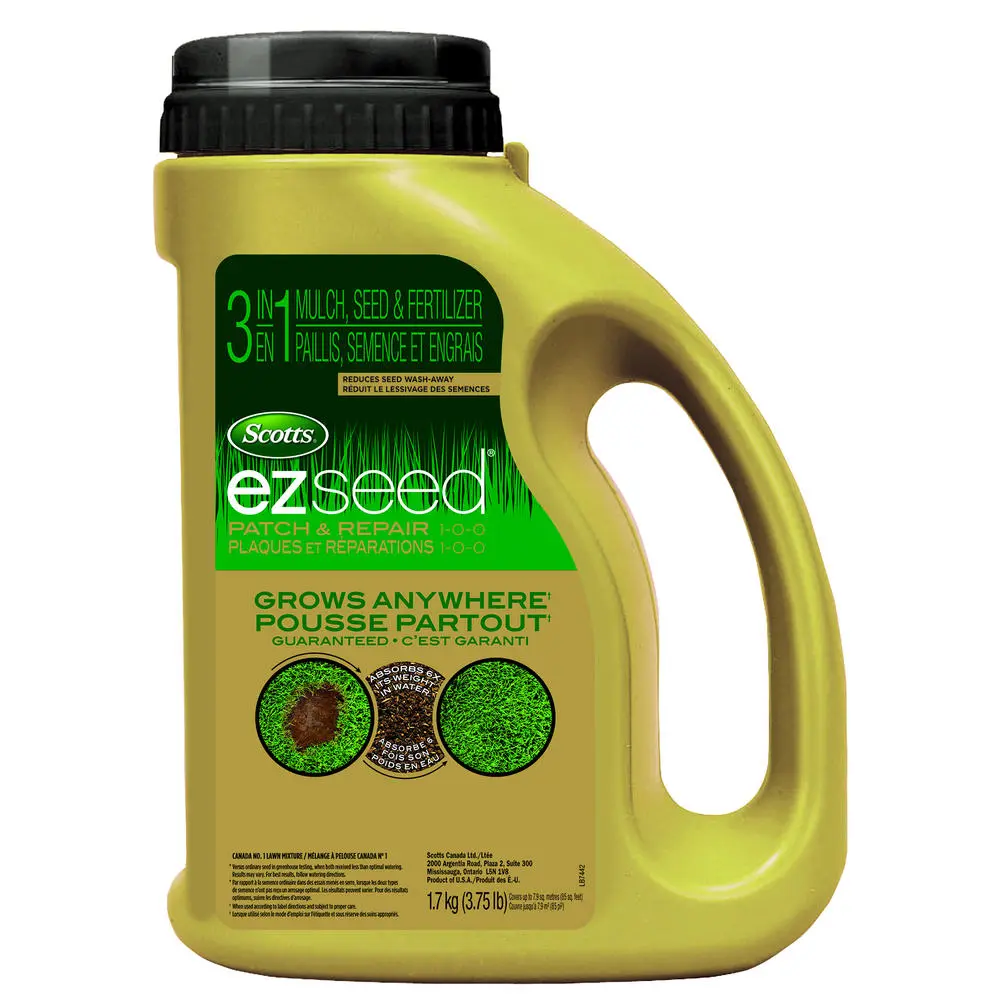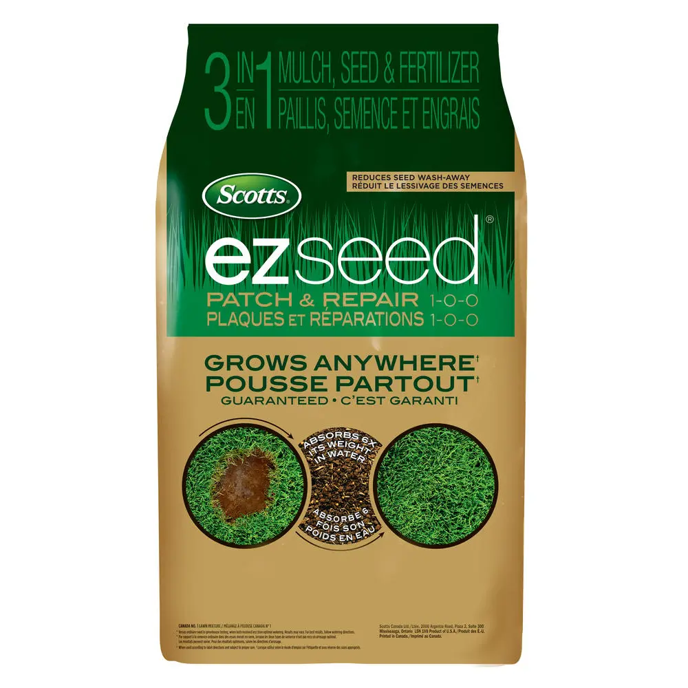 Just when you thought lawn patch and repair couldn’t get any easier, along comes new and improved Scotts ez seed! Why so great? This formula features tackifiers, which help seeds adhere to slopes and uneven ground. As a result, fewer seeds wash away and you get to enjoy better growing results. No mixing. No fussing. Mulch, seed and fertilizer are combined into one easy-to-use product. Just add water and watch it grow.