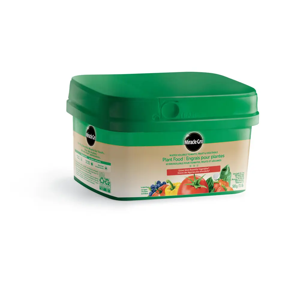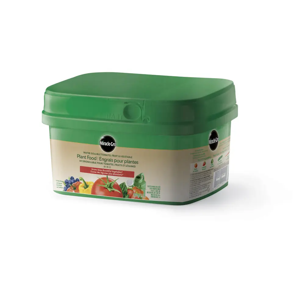 How do your garden veggies grow? Beautiful and bountiful, thank you, with a little help from Miracle-Gro Water Soluble Tomato, Fruit & Vegetable Plant Food 18-18-21. Grows More Bountiful Vegetables – and fruits, too! Tomatoes, peppers, cucumbers, and other garden plants need sunlight, water, and food to thrive. So, for big, beautiful, Miracle-Gro results, feed them with Miracle-Gro Water Soluble Tomato, Fruit & Vegetable Plant Food 18-18-21 every 7 to 14 days. Just mix with water as directed and apply.