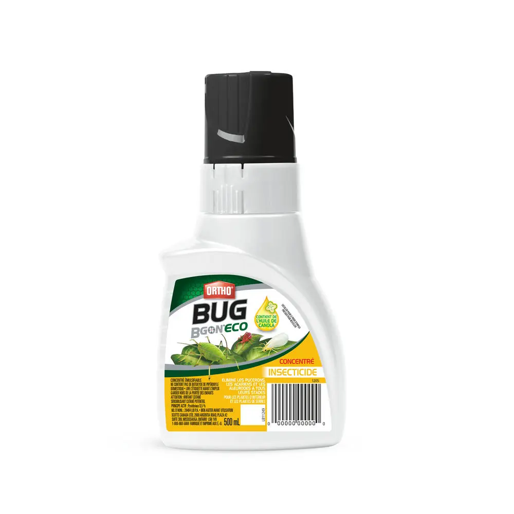 Ortho Bug B Gon ECO Insecticide Ready-to-Use is a one-step solution to control bug infestations in the greenhouse and on house plants. The pyrethrin formula containing canola oil is effective for controlling all life stages of mites, aphids, and whitefly, preventing reproduction and recurring infestations. Application is simple: whenever you see pests or pest-related damage on plants, get them under control with this ready-to-use spray that stops problems before they can grow. This insecticide can be used on a wide variety of plants, from indoor flowering plants to greenhouse vegetables—and it can be applied to produce right up to the day before harvest.