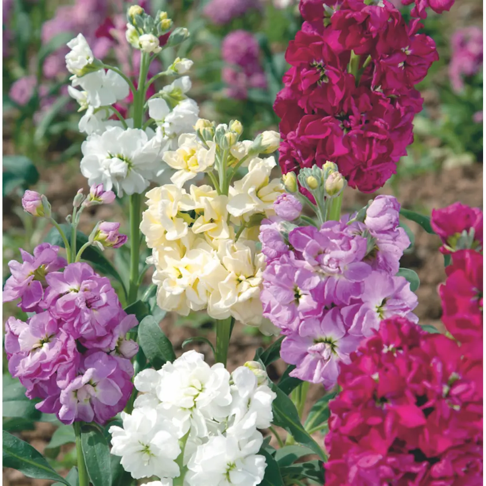 With highly fragrant blossoms, Stocks make a striking addition to flower beds, borders, and containers. Long lived, large flowers are well supported on strong stems that offer exceptional colour and rich fragrance to fresh arrangements. Ten Weeks Mix has a brilliant colour range of crimson, purple, white and pink on compact 30cm (12") tall plants.